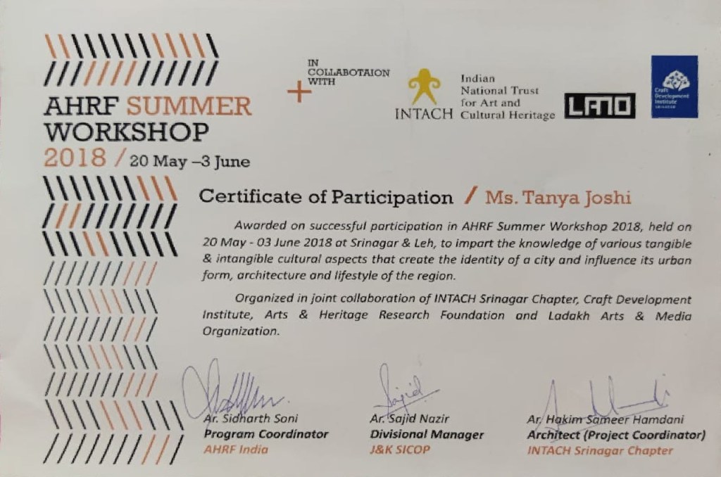 In 2018, AHRF India conducted a Summer Workshop in Srinagar & Ladakh to create discernments of urban characters through the perception of different essential urban components such as Design, Create, Foundation, Urban spaces and Characteristic Scenes and Social components that impact or characterize the Character of the city. The Expedition was inspired and influenced by Kevin Lynch’s theory about “The Image of the City” hypothesis but expanded its scope to innovation and capacities. It was arranged towards understudies of Engineering, Urban Plan and Urban Arranging and related ranges of think about, such as Design Preservation, Scenes Design and Craftsmanship and Plan.