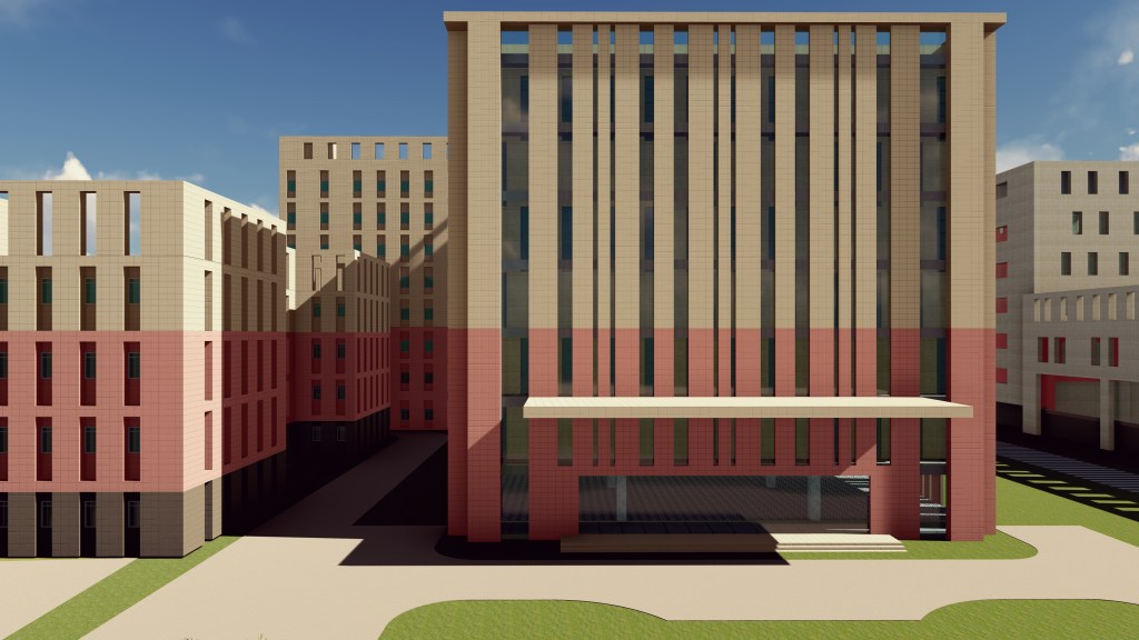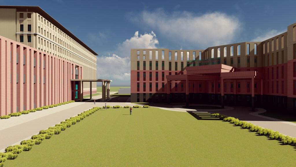 Vastunidhi developed the master plan for AIIMS’s Second Phase in Jodhpur, Rajasthan, covering 167 acres. The project includes a 1,000-bed super-specialty hospital, a trauma center, administrative and academic buildings, labs, allied infrastructure, and residences for staff, doctors, and students. The plan involved mapping the existing site and extending arterial road connections to maintain traffic flow while adding necessary infrastructure. Residential buildings were oriented along the north-south axis to reduce heat gain, with insulated walls and recessed windows featuring sunshades to withstand the harsh sun.