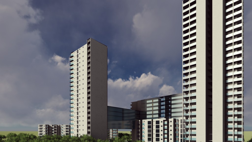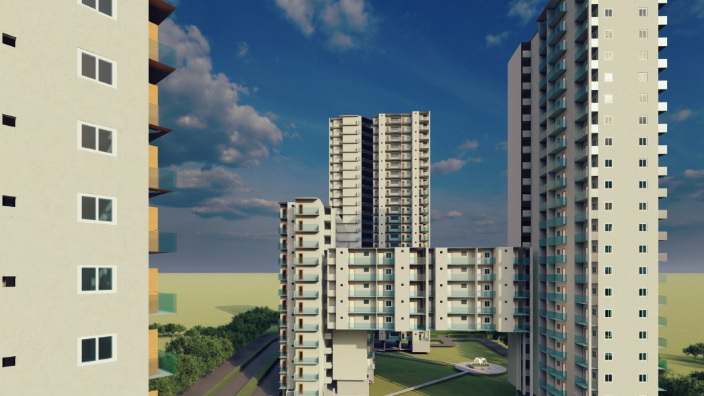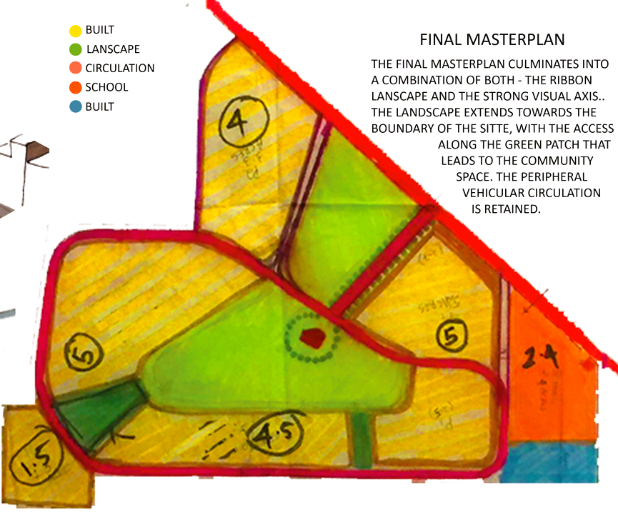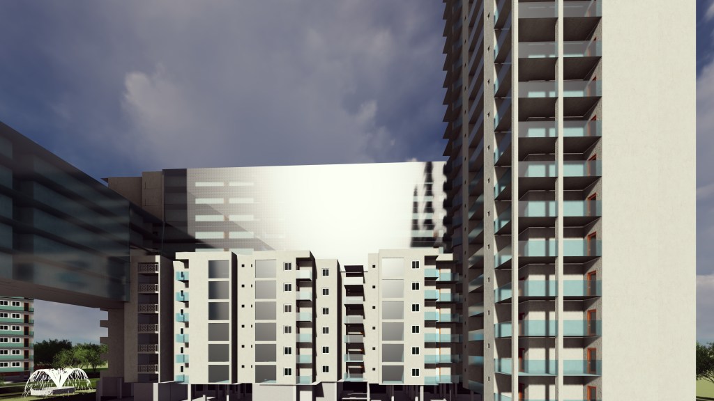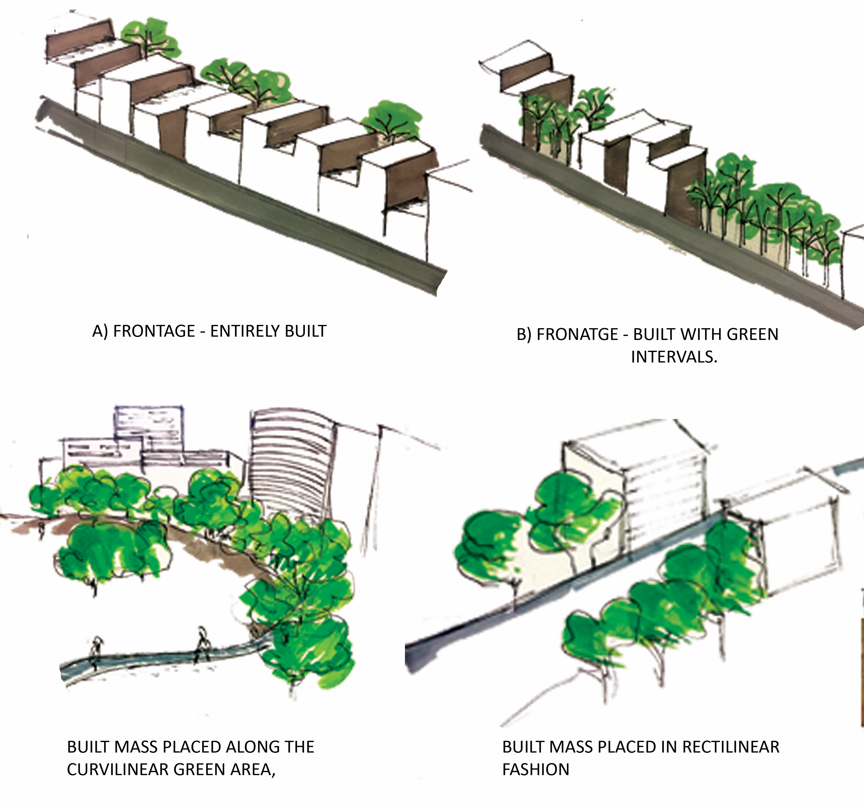 2.Creating an ENTRANCE CORRIDOR by using connecting structures joining two towers for plot A of the site and trying to make a connection with the nature by creating a landscaped area at one end of the corridor, such that a visitor can visually connect with the landscaped area as he enters the plot