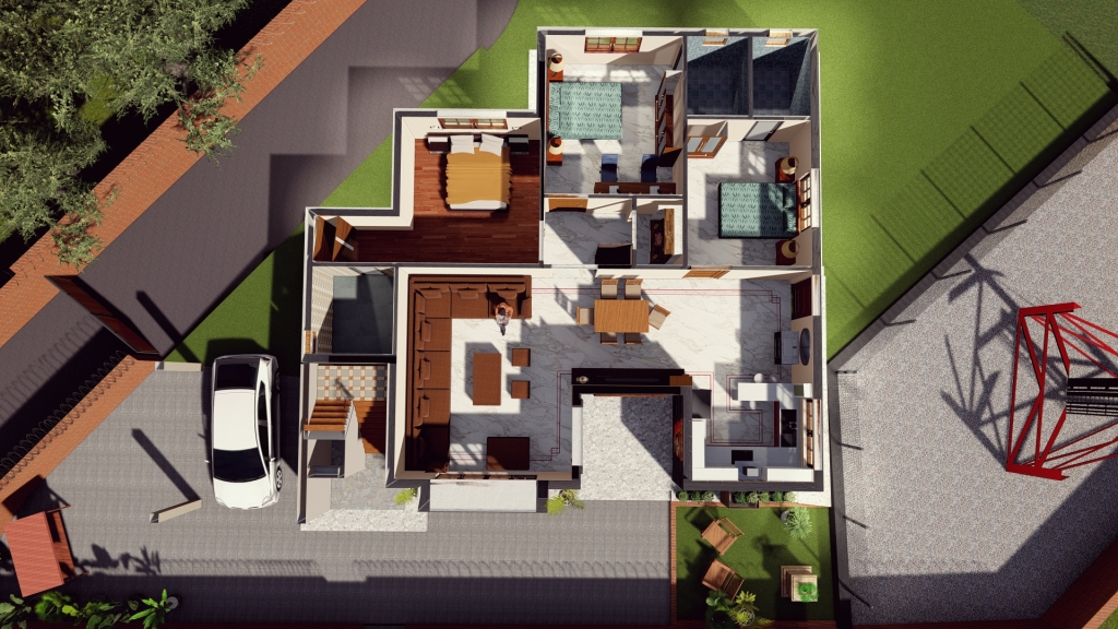 SketchUp and Lumion were used to enhance visualization. Lumion’s realistic renders helped clients experience the lighting, materials, and overall atmosphere of the home before construction, bringing the design to life.
